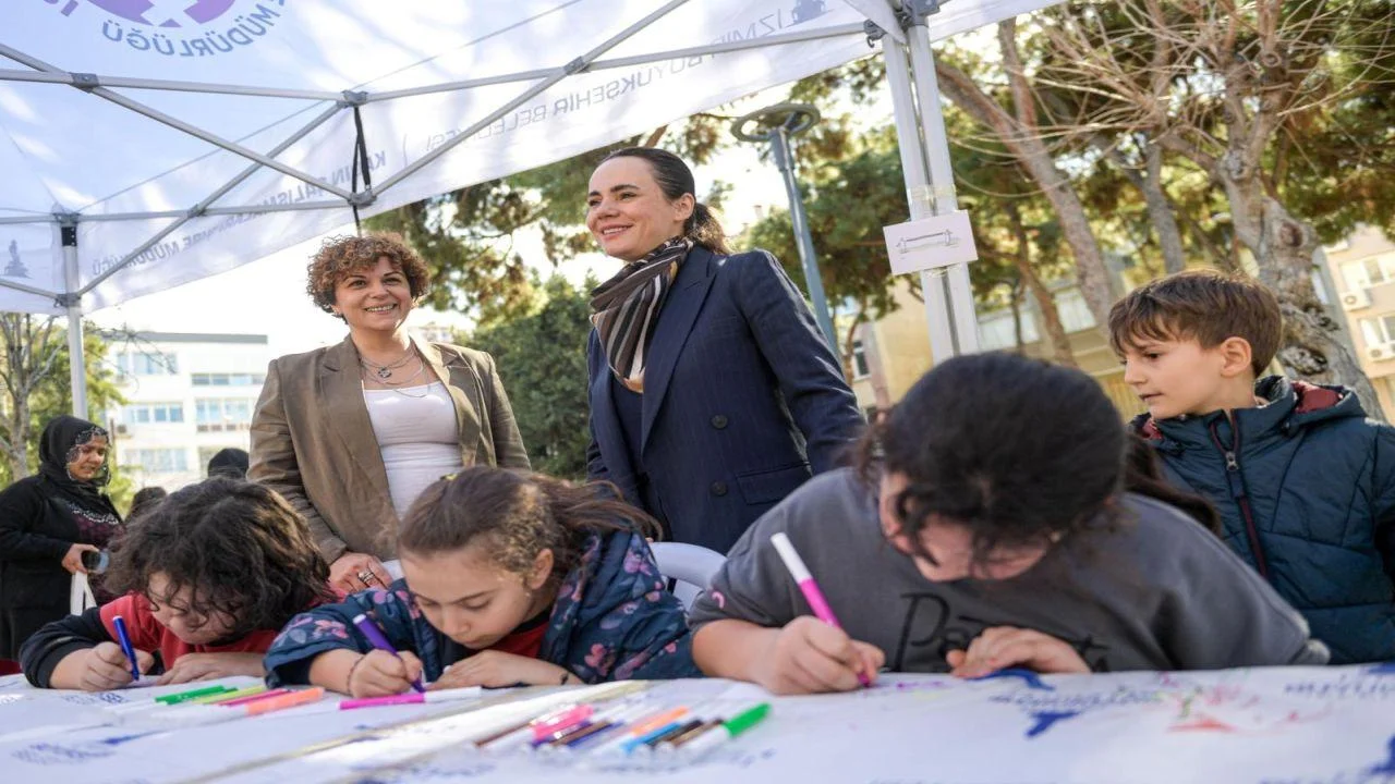 İzmir Büyükşehir Belediyesi Kadın ve Aile Hizmetleri Dairesi Başkanlığı Kadın Çalışmaları Şube Müdürlüğü, 8 Mart Dünya Kadınlar Günü kapsamında “8 Mart Dayanışma Noktaları” oluşturdu. Kadınlar, Kadifekale, Agora, Hatay ve Örnekköy’de bulunan kadın dayanışma merkezlerinde sunulan hizmetleri deneyimliyor, kadın sağlığı ve toplumsal cinsiyet eşitliği gibi konularda bilgilendiriliyor, 8 Mart’a özel pankart hazırlama etkinliklerine katılıyor. Çocuklar için de oyun etkinliklerinin hazırlandığı dayanışma noktaları, dayanışmayı güçlendirerek deneyim paylaşımına imkân tanıyor. İzmir Büyükşehir Belediye Başkanı Dr. Cemil Tugay’ın eşi Öznur Tugay, Behçet Uz Parkı’nda düzenlenen dayanışma noktasında kadınlarla bir araya geldi. 8 Mart Dünya Kadınlar Günü temalı pankartlar hazırlayan Tugay, kadınlarla sohbet etti.