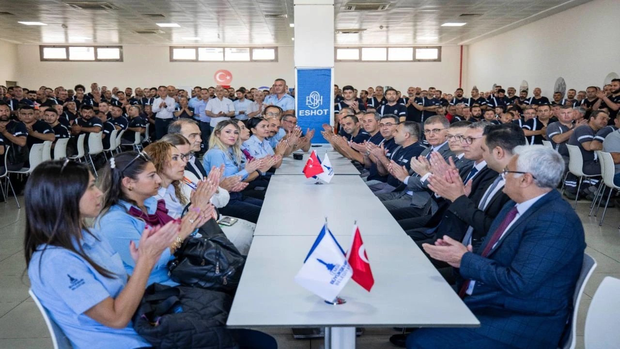 İzmir Büyükşehir Belediye Başkanı Dr. Cemil Tugay, Kurban Bayramı öncesinde İZSU’nun ardından ESHOT Genel Müdürlüğü personeli ile bayramlaştı. Başkan Tugay’ı Buca Gediz Atölyesi’nde İzmir Büyükşehir Belediyesi Genel Sekreter Yardımcısı ve ESHOT Genel Müdürü Övünç Özgen karşıladı. Bayramlaşmaya İzmir Büyükşehir Belediyesi Başkan Vekili Dr. Zafer Levent Yıldır, İzmir Büyükşehir Belediyesi Genel Sekreter Yardımcısı Prof. Dr. Pınar Okyay, Devrimci İşçi Sendikaları Konfederasyonu (DİSK) Genel İş Sendikası 1 No'lu Şube Başkanı Engin Topal da katıldı.