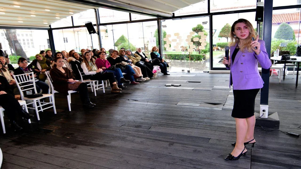 Programın ikinci bölümünde Avukat Necmiye Ece Uncu Danyıldız, “Flört Şiddetinin Kadınlar Üzerindeki Hukuki Yüzü” başlıklı sunumuyla flört şiddetinin tanımını, türlerini ve yasal boyutlarını anlattı. “Şiddet evlilikle başlamaz; flört döneminde başlayan ısrar, baskı ve kontrol davranışları da hukuken şiddet kapsamındadır” diyen Danyıldız, kadınların sahip olduğu yasal haklar ve başvuru yolları hakkında katılımcıları bilgilendirdi.