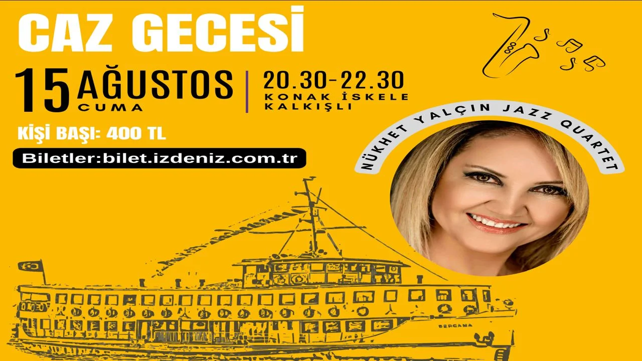 İzmir Büyükşehir Belediyesi İZDENİZ AŞ, İzmir Körfezi’nde etkinlikler düzenlemeye devam ediyor. Tarihi Bergama Vapuru’nda 15 Ağustos Cuma günü caz gecesi etkinliği var. Nükhet Yalçın, müzikseverlere, caz ve Latin müziğin klasiklerinden Türk Hafif Müziği’nin unutulmaz eserlerine, rock ve blues çeşitlemelerinin farklı yorumlarına kadar geçmişten bugüne uzanan geniş yelpazede unutulmaz saatler yaşatacak. Nükhet Yalçın Jazz Quartet’e piyanoda Mehmet Ariç, basta Uğur Yalçın ve virtüöz trompet sanatçısı Uğur Sayınbatur eşlik edecek.