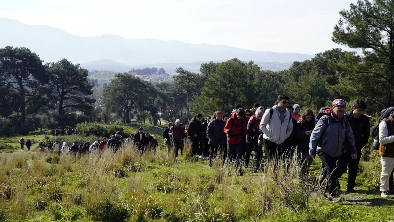 İzmir Büyükşehir Belediyesi, üniversite öğrencilerine yönelik doğa ve ilkbahar temalı gezi programı kapsamında Efes-Mimas Yolu’nda geniş katılımlı bir yürüyüş etkinliği düzenledi.