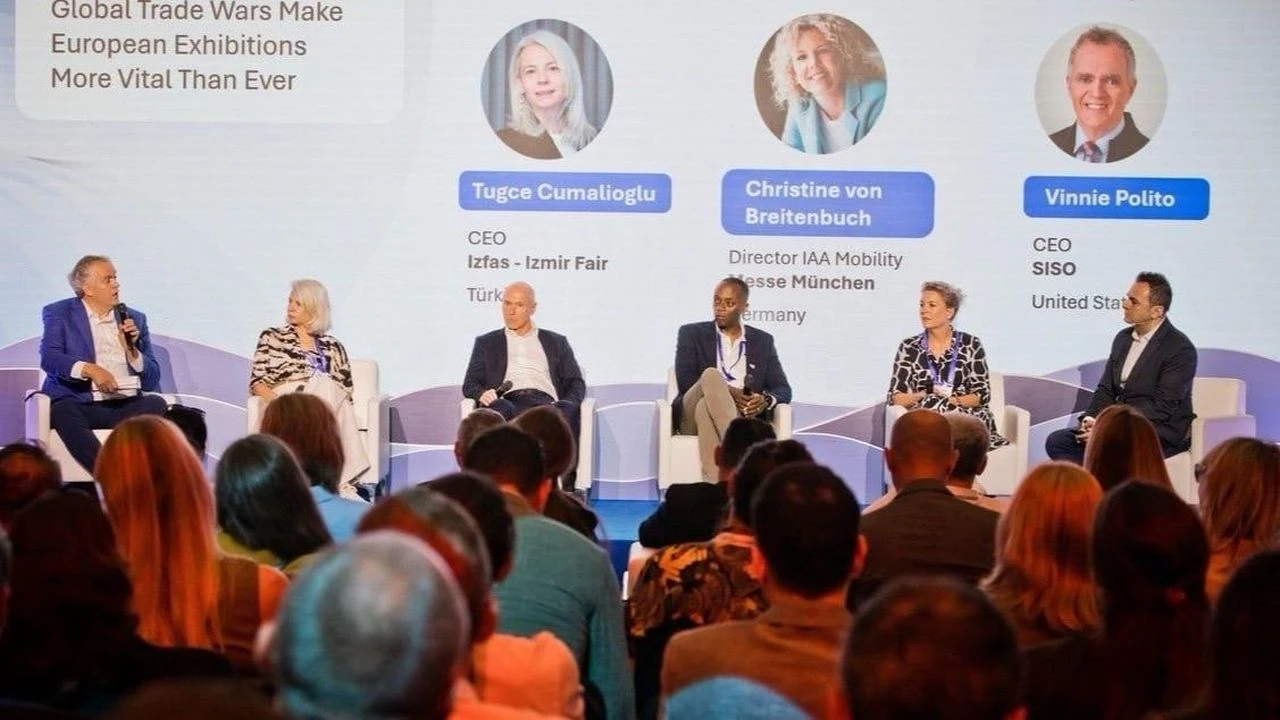 Ana oturumlarda “Dünya Ticaret Savaşlarının Avrupa Fuarlarına Etkisi” adlı panele İZFAŞ Yönetim Kurulu Üyesi, Genel Müdürü Tuğçe Cumalıoğlu konuşmacı olarak katıldı. Cumalıoğlu, Amerika Birleşik Devletleri’nin Çin’e uyguladığı yüksek vergiler sonucunda başlayan küresel ticaret savaşlarının Avrupa’da ve Türkiye’de organize edilen fuarlara olumlu etkileri ve yansımaları hakkında konuştu.
