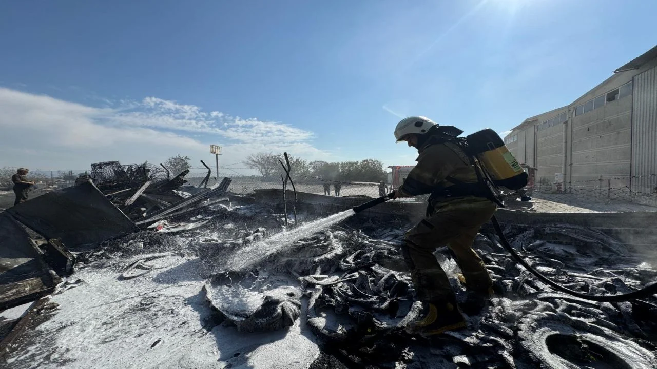İzmir Çanakkale Yolu Fatih Mahallesi Helvacı Kavşağında bulunan bir lastik deposunun çevresinde saat 15.00’te başlayan yangın İzmir Büyükşehir Belediyesi İtfaiye ekipleri tarafından işletmeye sıçramadan söndürüldü. Yangına, Aliağa Belediyesi’ne ait su tankeri ile ilk müdahale yapıldı. İzmir İtfaiyesi 2 arazöz ve 1 tonaj aracı ile yangını kontrol altına aldı. Olayda can kaybı veya yaralanma yaşanmadı.