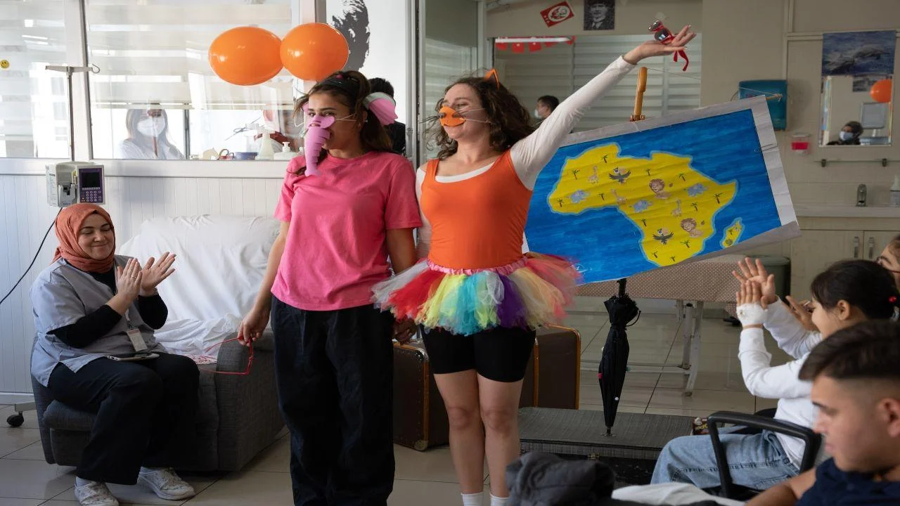 İzmir Büyükşehir Belediyesi Şehir Tiyatroları (İzBBŞT) onkoloji servislerinde tedavi gören çocuklara moral vermek ve sanatla iletişimlerini güçlendirmek için başlattığı “Sanat İyileştirir” projesi kapsamında ziyaretlerini sürdürüyor. İzBBŞT, proje için özel olarak “Pembe Hortum ve Sarman” isimli çocuk oyunu ile “2-8 Kasım Lösemili Çocuklar Haftası” nedeniyle düzenlenen etkinlikler kapsamında Dr. Behçet Uz Çocuk Hastalıkları ve Cerrahisi Eğitim ve Araştırma Hastanesi’ndeki miniklerle bir araya geldi.