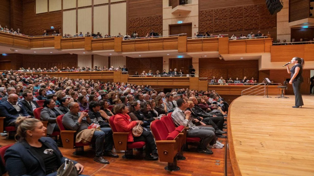 Atatürk’ün yaşamının son beş dakikasını konu alan bu özel anlatı eşliğinde, İzmir Oda Orkestrası seçkin eserlerden oluşan bir programla sahneye çıktı. Lerzan Pamir’in yönetmenliğinde, Mehmet Ergen’in kaleminden çıkan Dokuzu Beş Geçe adlı eser, tiyatro sanatçıları Tilbe Saran ve Yiğit Özşener’in anlatımıyla sanatseverlerle buluştu. Gözyaşlarına hakim olamayan İzmirliler, konseri ayakta alkışladı.