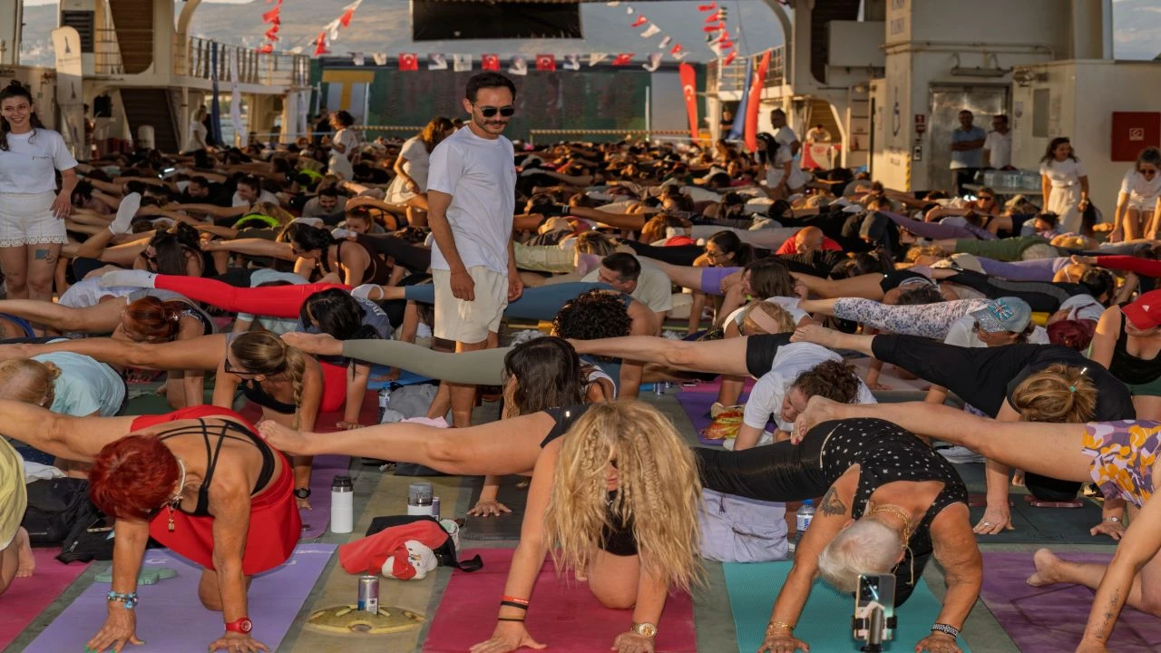 İzmir Büyükşehir Belediyesi Gençlik ve Spor Hizmetleri Dairesi Başkanlığı, İZDENİZ’in de katkısıyla unutulmaz bir etkinliğe imza attı. Hasan Tahsin Arabalı Vapuru bu kez sıra dışı bir etkinliğe ev sahipliği yaptı. 21 Haziran Dünya Yoga Günü nedeniyle feribotta buluşan 400 İzmirli, yılın en uzun gününe, denizin ortasında yoga eşliğinde veda etti. Bostanlı Vapur İskelesi’nden Körfez’e açılarak gün batımına doğru yola çıkan İzmirliler, yoga eğitmeni Beste Elvanlı ile unutulmaz anılar biriktirdi.
