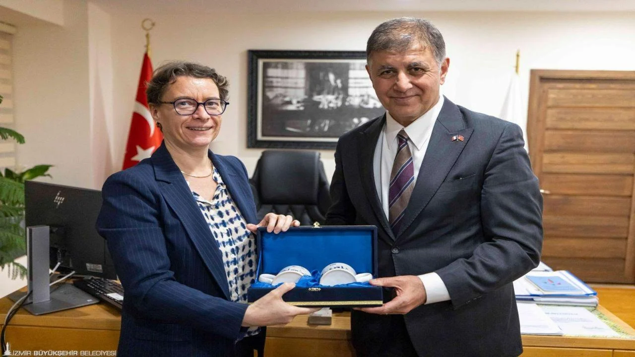 İzmir Büyükşehir Belediye Başkanı Dr. Cemil Tugay, Fransa’nın Ankara Büyükelçisi Isabelle Dumont, İstanbul Başkonsolosu Nadia Fanton ve Fransa Kalkınma Ajansı Ülke Direktörü Xavier Muron’u konuk etti. İzmir’in finansman destekli yatırımlarından karşılıklı kültürel ilişkilere kadar pek çok konunun konuşulduğu buluşmada Başkan Tugay, İzmir ile Fransız şehirleri arasındaki ilişkilerin geliştirilmesi için ortak çalışma çağrısı yaptı.