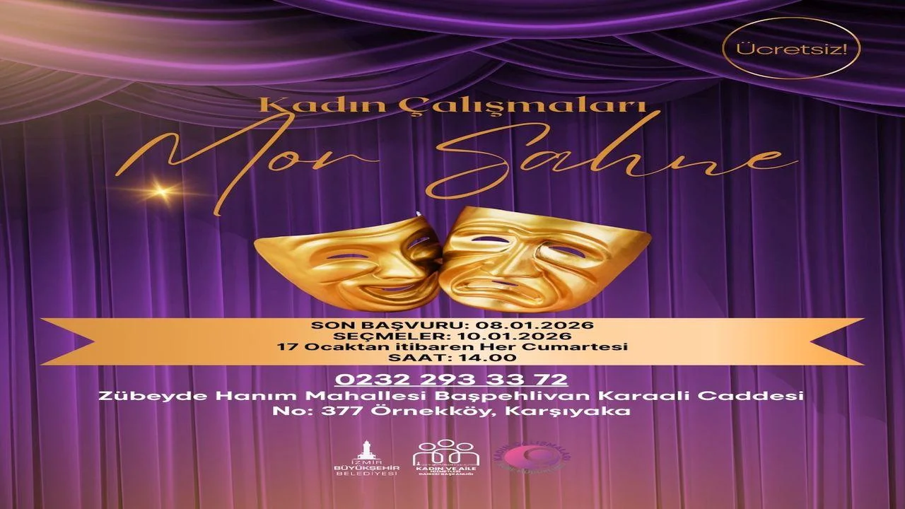İzmir Büyükşehir Belediyesi Kadın Çalışmaları Şube Müdürlüğü tarafından yürütülen Mor Sahne tiyatro çalışmaları için başvurular başladı. Kadınların sahne aracılığıyla kendini ifade etmesini amaçlayan ücretsiz çalışma, tiyatroya ilgi duyan ve sahnede var olmak isteyen tüm kadınları bekliyor.