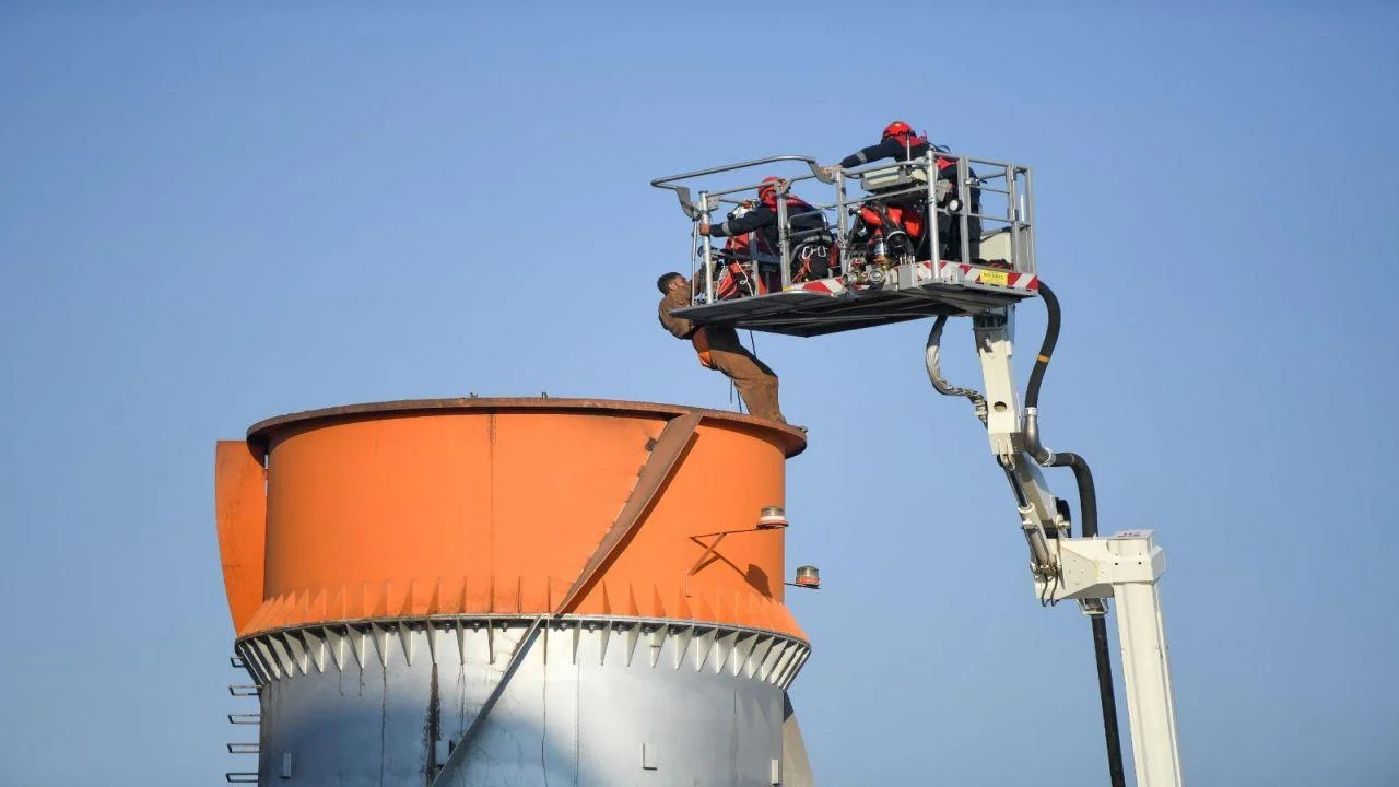 Bornova’da Ankara Caddesi üzerinde bulunan bir çimento fabrikasına ait 70 metre yüksekliğindeki bacaya temizlik amacıyla çıkan 2 işçi, iskelenin çökmesi sonucu yaklaşık 10 metre aşağıya düşerek baca içerisinde mahsur kaldı. Olayın ihbar edilmesi üzerine bölgeye İzmir Büyükşehir Belediyesi İtfaiye Dairesi Başkanlığı ve AFAD ekipleri sevk edildi. Ekipler, 90 metrelik merdivenli araçla bacanın üst kısımlarına doğru çıkarak işçilere ulaştı. Ekipler, yaklaşık dört saatlik titiz ve kontrollü çalışmaların ardından işçileri mahsur kaldıkları yerden kurardı. Sağlık durumlarının iyi olduğu belirlenen işçiler, tedbir amacıyla 112 Acil Sağlık ekiplerine teslim edildi.