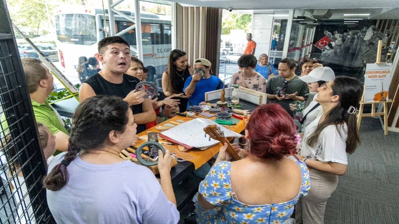 Bu kapsamda; merkez öğrencileri ve velileri, Galeri Alt’ta açılan Sürdürülebilir Müzik Aletleri Sergisi’ni ziyaret etti. Karşıyaka Belediyesi'ne bağlı Mahmure Handan Hanım Müzik Aletleri Yapım Atölyesi katılımcıları tarafından atık ve geri dönüştürülmüş malzemelerle hazırlanan eserleri ilgiyle inceleyen özel bireyler, müziğin birleştirici gücüyle keyifli anlar yaşadı. Atölye eğitmeni Burçin Bayar Babaoğlu’nun sunduğu mini müzik dinletisi de sergi ziyaretine renk kattı. Doğaya duyarlı yaklaşımı ve yaratıcı üretim anlayışıyla dikkat çeken sergi, 15 Ağustos’a kadar Karşıyaka Belediyesi ana hizmet binası giriş katında ziyaret edilebilecek.