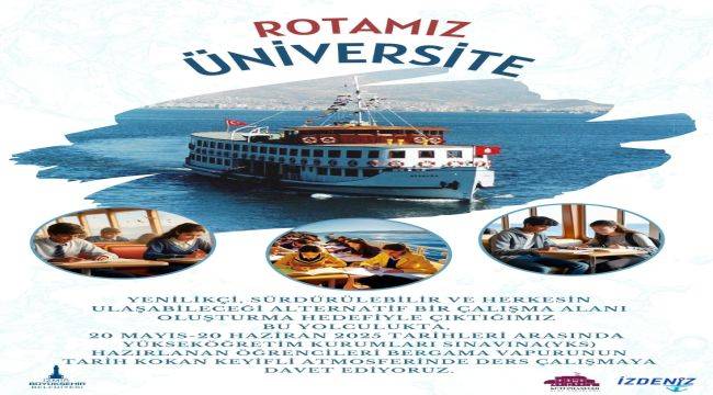 Gençlerin ders çalışma alanlarına yönelik ihtiyaçlarından yola çıkan İzmir Büyükşehir Belediyesi Kütüphaneler Şube Müdürlüğü, 19 Mayıs Gençlik ve Spor Bayramı’nın 106. yıl dönümünde İZDENİZ AŞ iş birliğinde özel bir projeyi hayata geçiriyor. Proje kapsamında Konak İskelesi’nde bulunan tarihi Bergama Vapuru’nda 20 Mayıs-20 Haziran tarihleri ve 10.00-22.00 saatleri arasında YKS’ye hazırlanan öğrencilere yönelik alternatif çalışma alanı oluşturulacak. Sessiz, konforlu ve motive edici bir çalışma ortamı sunulmasının yanı sıra öğrencilerin sınav stresini yönetme, dikkat ve zaman kontrolü gibi konularda destek almaları amacıyla stres yönetimi ve sınav kaygısı ile baş etme yolları gibi seminerler de düzenlenecek. Proje boyunca katılımcılara ücretsiz internet hizmeti ile çay, kahve ve su ikramları da sunulacak. Proje ile birlikte gençler, deniz manzarasına karşı huzurlu bir atmosferde ders çalışmanın ayrıcalığını yaşayacak.
