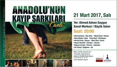 Nezih Ünen'in gösterime girdiği dönemde Türkiye'de ve dünyanın farklı ülkelerinde ilgiyle izlenen belgesel filmi “Anadolu'nun Kayıp Şarkıları”, canlı performanslarla İzmir Büyükşehir Belediyesi Ahmed Adnan Saygun Sanat Merkezi'nde (AASSM) sahnelenecek. Filmde söylenen yöresel şarkılar perdeye yansıtılırken sahnede de Türkiye'nin önemli müzisyenleri bu şarkılara eşlik edecek. Anadolu mirası eserler, Batı müziğiyle harmanlanarak izleyenlere eşsiz bir müzikal şölen sunacak.