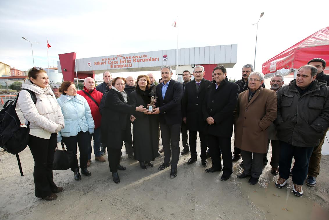 MİT TIR’ları haberi nedeniyle parmaklıklar ardına gönderilen Can Dündar’a destek olmak ve ‘Basın Özgürlüğü Ödülü’nü ulaştırmak için yola çıkan Karşıyaka Belediyesi ve İGC heyeti, bugün Silivri Ceza İnfaz Kurumu’na gitti. Cesur gazetecinin ödülü, Karşıyaka Belediye Başkanı Hüseyin Mutlu Akpınar ve İGC Başkanı Misket Dikmen tarafından, eşi Dilek Dündar’a takdim edildi. Can Dündar da avukatı aracılığıyla teşekkür mesajı gönderdi.