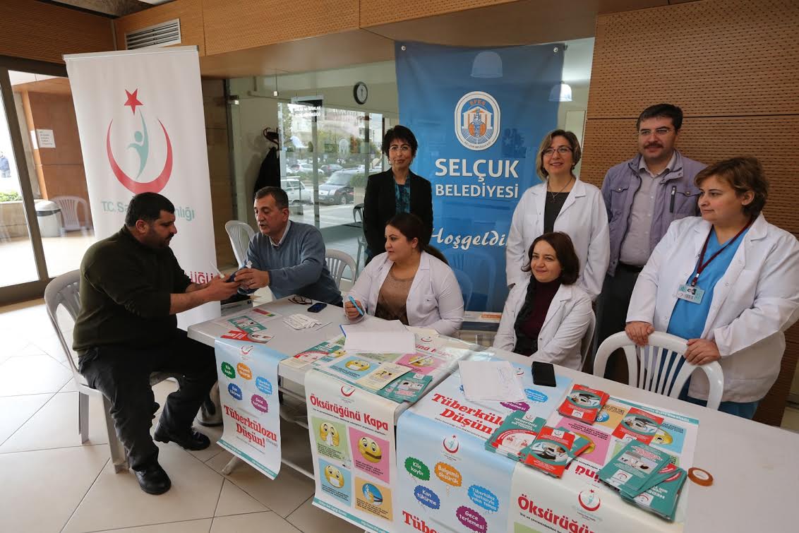 T.C. Sağlık Bakanlığı Türkiye Halk Sağlığı Kurumu’nun başlattığı, insanlarda farkındalık yaratmak adına “Hedefimiz Veremsiz Bir Türkiye” kampanyası çerçevesinde eğitim kurumları başta olmak üzere camilere ve bazı kamu kurumlarına stant kuruldu. İlk olarak Selçuk Belediyesi’nin katkılarıyla belediye hizmet binası zemin katta kurulan stantta vatandaşlara Tüberküloz (Verem) nedir, nasıl bulaşır, belirtileri nelerdir, belirtileri varsa ne yapmak gerekir ve nasıl korunabileceği hakkında bilgiler verilerek görevli sağlık personeli tarafından karbon monoksit ölçümü yapıldı.
