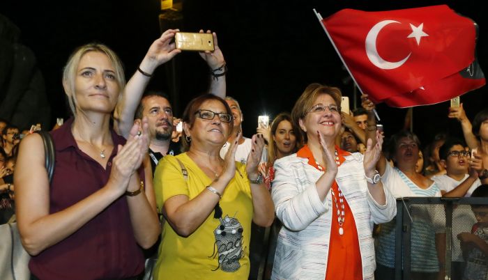 Konseri izleyenler arasında yer alan Konak Belediye Başkanı Sema Pekdaş, Yeni Türkü üyelerine teşekkür için çıktığı sahneden konseri izlemeye gelenlere seslendi. Mustafa Kemal Atatürk ve silah arkadaşlarının verdiği bağımsızlık mücadelesi sayesinde bugün özgürce şarkılar söylenebildiğini dile getiren Pekdaş, “Özgürlükler için savaşan, mücadele eden başta Mustafa Kemal Atatürk olmak üzere tüm milli mücadele kahramanlarına vefa borcumuzu ödeme mecburiyetimiz var. Büyük Atatürk, 30 Ağustos Zaferi’ni ‘ölümsüzlük abidesi’ olarak tanımlar. Türk Milleti’nin, hürriyet içinde, bağımsızlık içinde yaşamasını sağlayan zafere ‘Ölümsüzlük abidesi’ der. Bu eserin yaratılması için Türk Milleti’nin bir ferdi olarak, Türk Ordusu’nun Başkomutanı olarak, verdiğim mücadeleden dolayı onur duyuyorum, mutluluk duyuyorum’ der. Bizler de bu onura sahip bu büyük önderlerin yurttaşı olmaktan onur duyuyoruz" dedi.