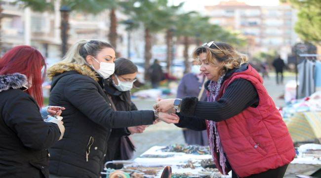 Gaziemir Belediyesi’nin Sevgi Yolu’nda tahsis ettiği alanda kadınlarla birlikte ürettikleri el emeği ürünleri satarak gelir elde etiklerinin altını çizen Jale Erol şöyle konuştu: