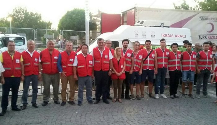 Kızılay Konak Şube Başkanı Tekin Akkoyun, günlerdir meydanda sabahlara kadar nöbet tutanlara destek olmak istediklerini vurgulayarak, “ Meydanda demokrasi nöbeti tutan halkımıza destek vermek için çeşitli ikramlarda bulunduk. Katılımcılara gençlik kollarımız tarafından ikramlar dağıtıldı. Akşam saatlerinde başlayarak sabaha kadar demokrasi mücadelesi için nöbet tutan halkımıza destek olmaktan büyük memnunluk duyduk. Demokrasi nöbetçilerine desteklerimiz sürecek”diye konuştu.